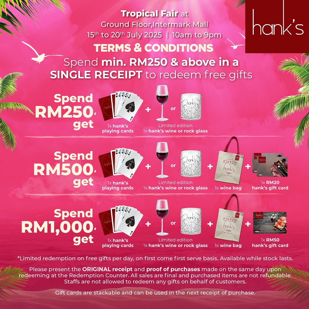 Spend RM250 and above in a single receipt and redeem an exclusive tropical-themed gift to bring a touch of paradise home with you.