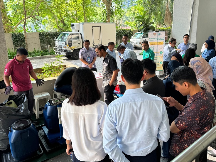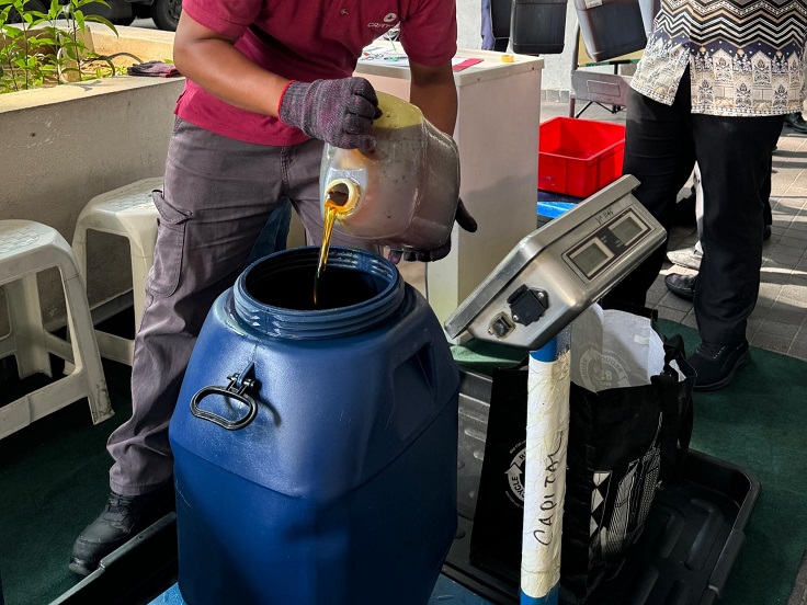 In partnership with KWAP from the adjoining Integra office tower, a Used Cooking Oil (UCO) Collection was held at Intermark Mall on 25 July 2024 garnering participation from KWAP employees and mall F&B tenants and shoppers. The one-day initiative successfully gathered 150 kg of used cooking oil, with 85 kg contributed by Food Hall tenants, engaging a total of 30 participants.